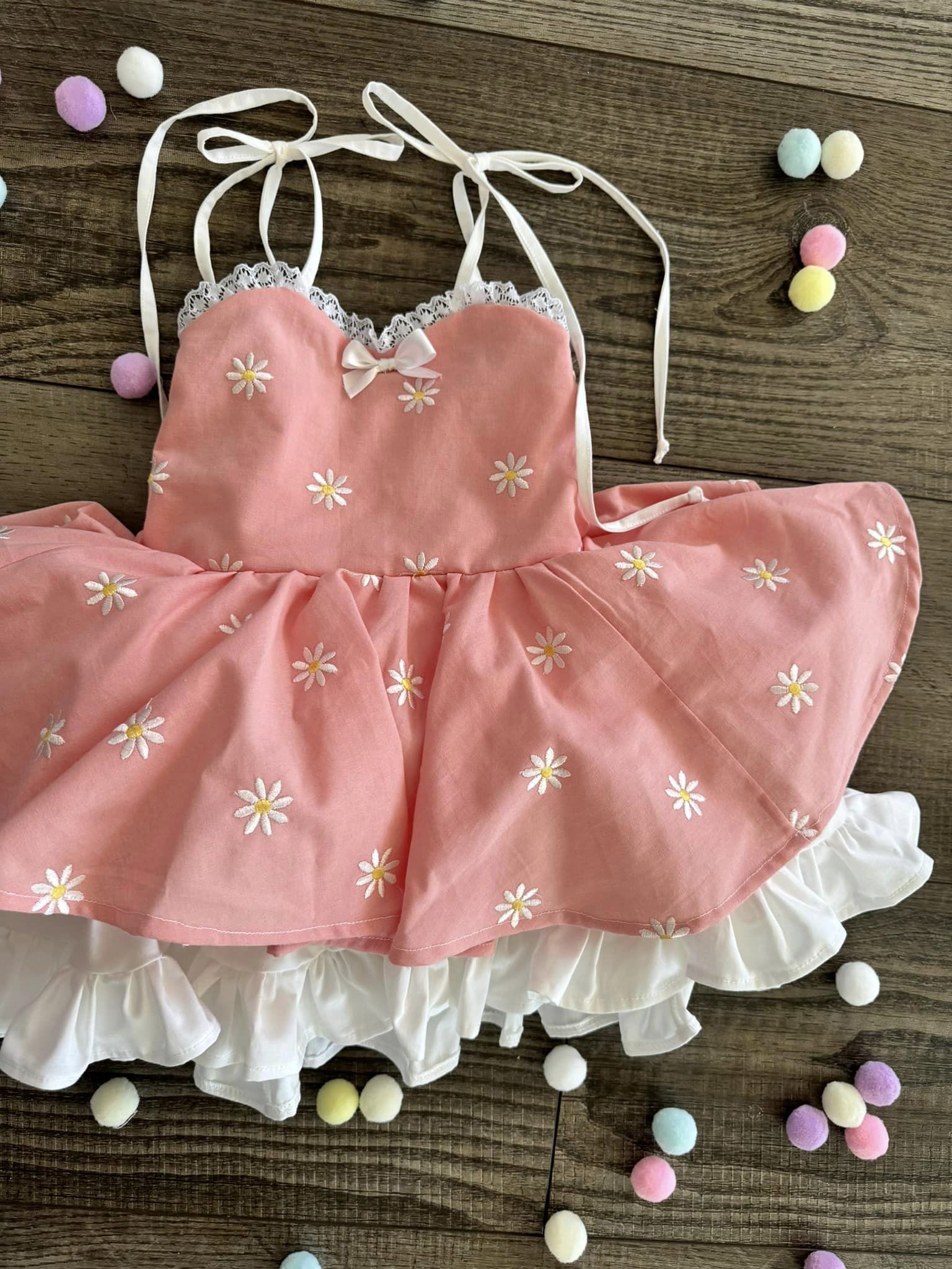 PREORDER Embroidered daisy poof dress (Petticoat layer included)