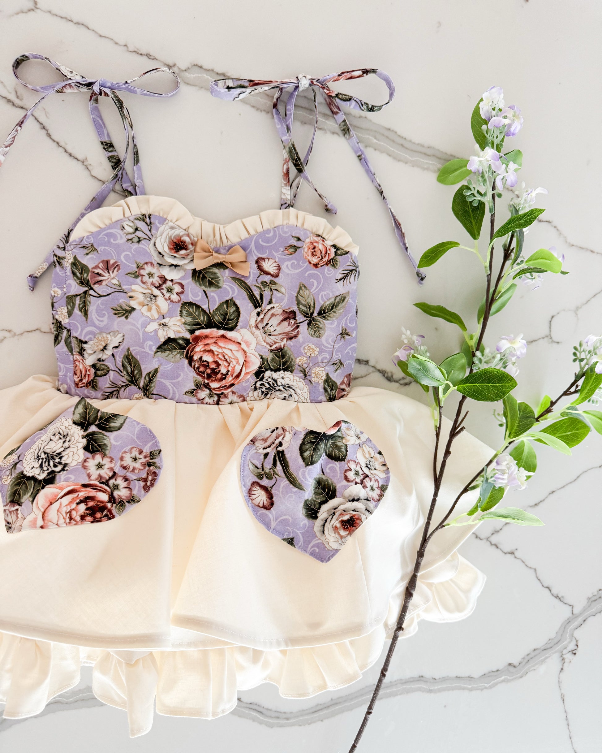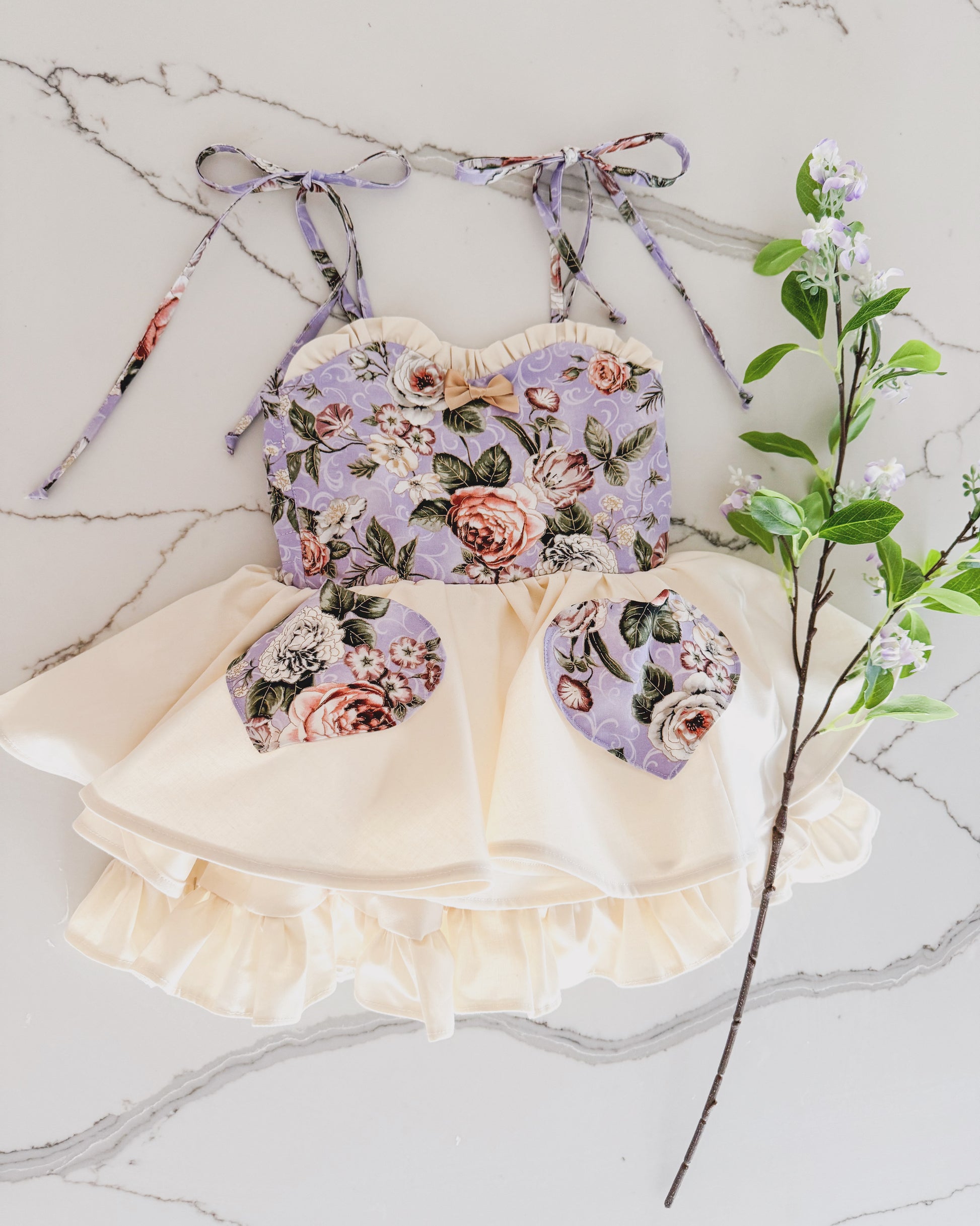 PREORDER Lilac Floral and Ivory poof dress with petticoat layer